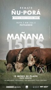 El remate estará a cargo de Escritorio Dutra y de Indarte y Cía y tendrá lugar en el establecimiento Ñu Porá situado en el km 366.500 a 12 kms de la ciudad de Paysandú.