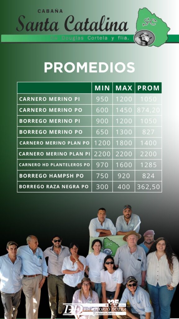 El Escritorio Dutra realizó el tradicional remate de los Merino Australiano de la Cabaña Santa Catalina, de Douglas Cortela, en su propio establecimiento, ubicado próximo a Nueva Palmira, en el departamento de Colonia.