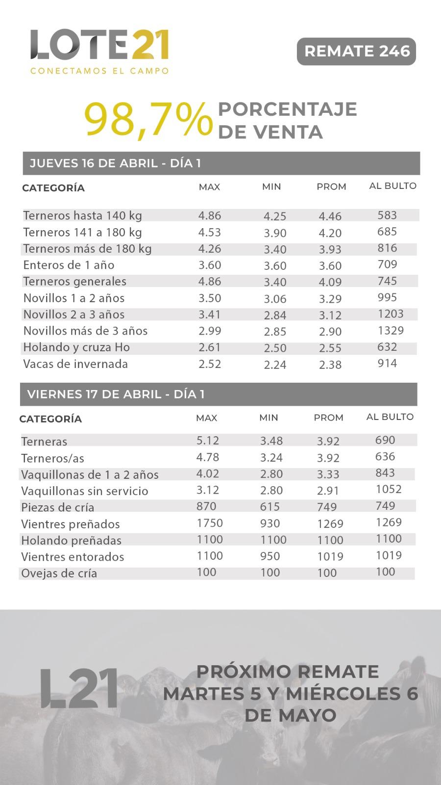 Estévez resaltó los promedios alcanzados y especialmente los precios que marcaron incrementos en todas las categorías.