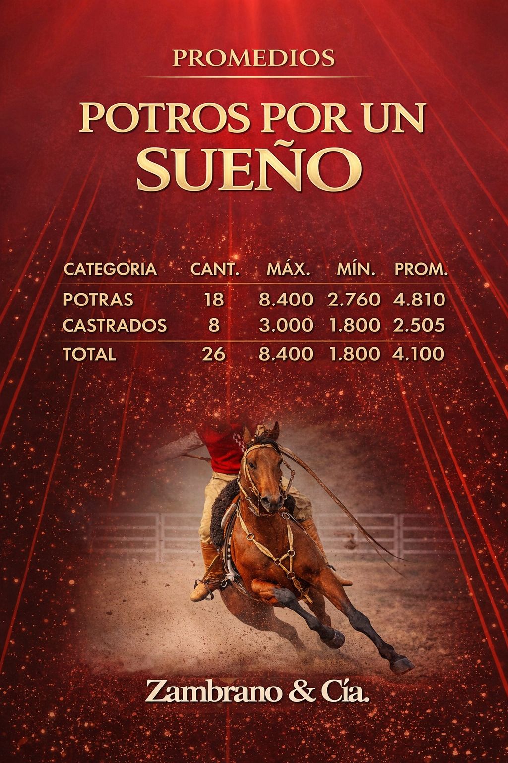 General | 19/04/2026 El Escritorio Zambrano & Cía cumplió ayer el anunciado remate «Potros por un Sueño», a un precio máximo de US$ 8.400. Ese valor se alcanzó en la categoría de las Potrancas. Les ofrecemos a continuación el resumen de las ventas realizadas.- Lote 21 logró un buen remate con subas en todas las categoría El regreso de la marca alemana de tractores que volvió a Uruguay